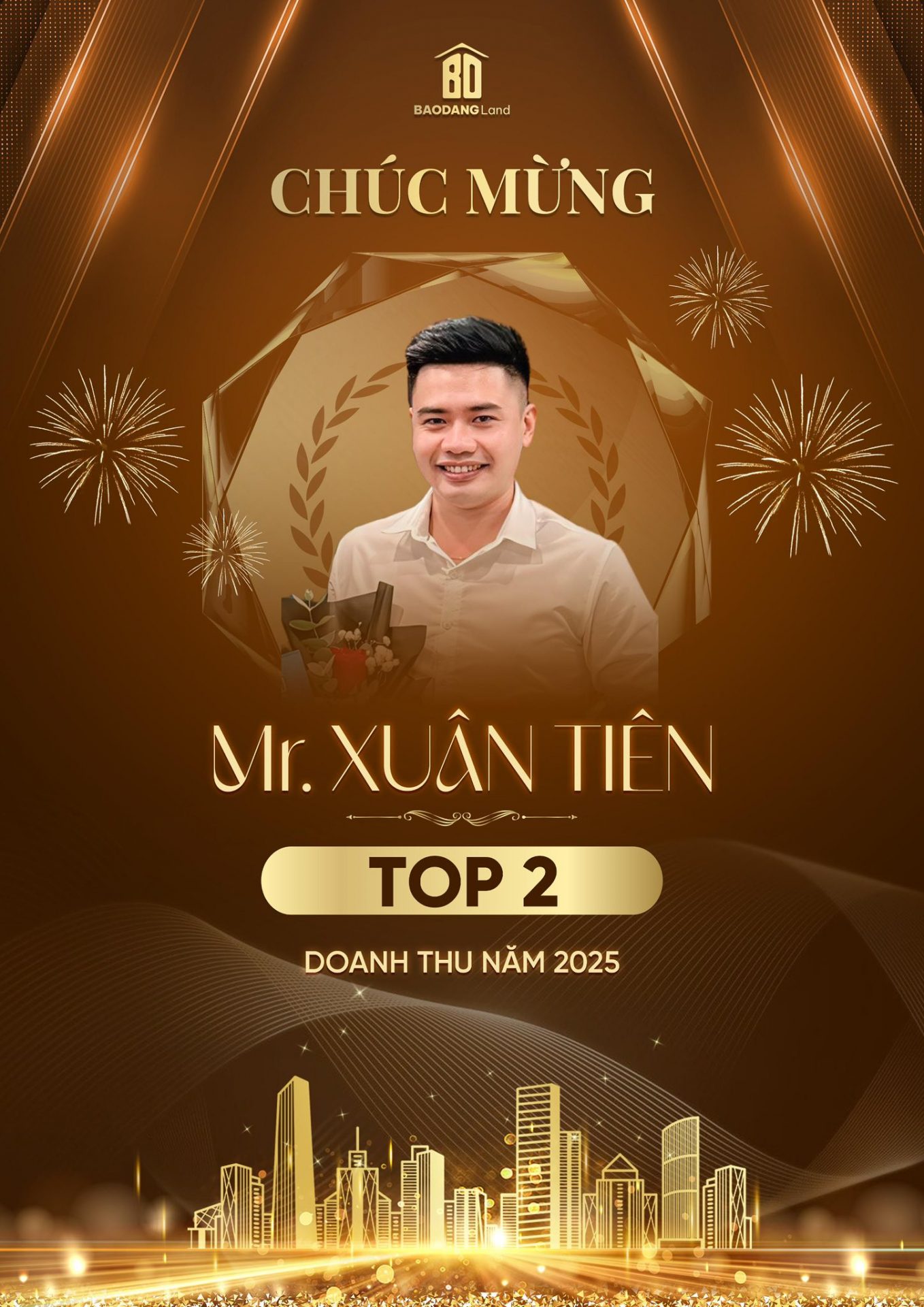 Mr. Xuân Tiên được vinh danh nhờ sự kiên trì và nhiệt huyết trong việc theo đuổi các thương vụ phức tạp. Với sự thấu hiểu nhu cầu khách hàng, Xuân Tiên đã khẳng định năng lực qua tỉ lệ giao dịch thành công cao, góp phần củng cố vị thế của Bảo Đăng Land là đơn vị môi giới chuyên nghiệp tại khu vực Đà Nẵng và Quảng Nam.