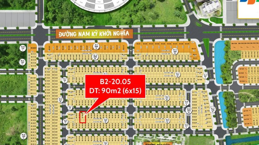 *Mã lô: B2-134.32 *Diện tích: 96m² (ngang 6m, dài 16m) *Hướng: Đông Nam *Vị trí: Lô kẹp vệt cây xanh, cực thoáng và [hơn]